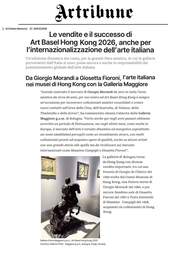 Sales and success of Art Basel Hong Kong 2026, also for the internationalization of Italian art