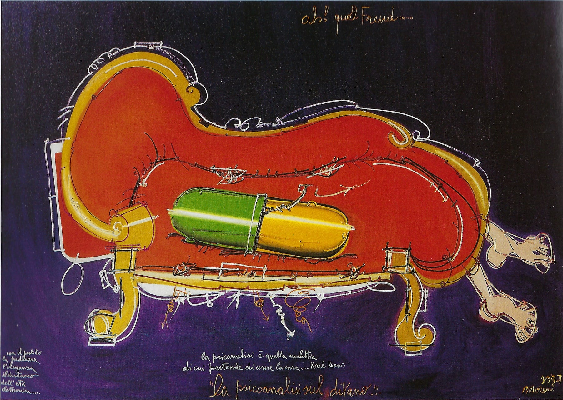 Ah! quel Freud.. la psicanalisi sul divano (Ah! That Freud... psychoanalysis on the couch), Mattia Moreni, 1997, Oil on canvas: 200 x 280 cm. The artist is one of the major figures of postwar Italian art.